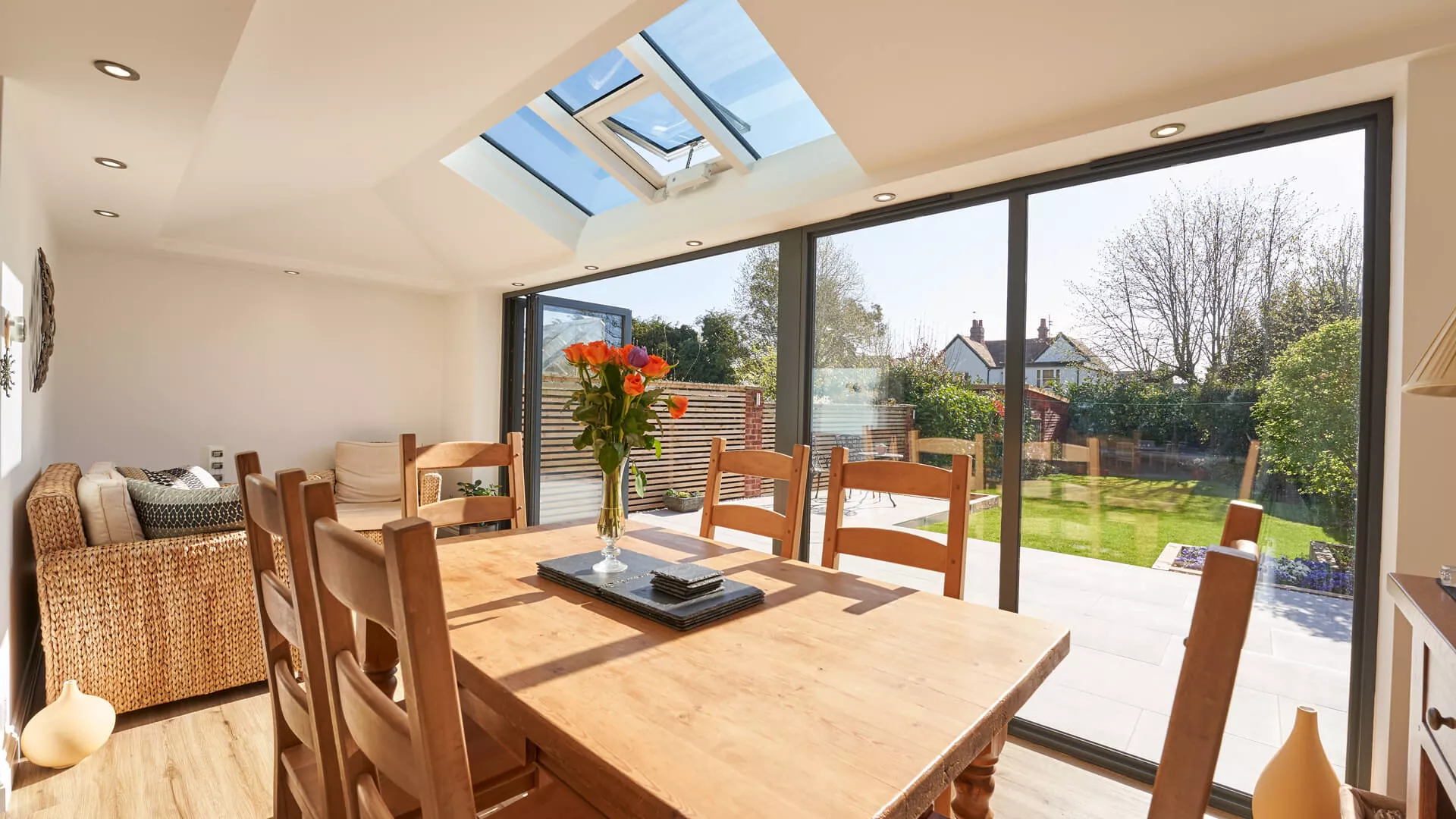 To achieve a consistent aesthetic throughout the design, it requires some colour coordination, which means ensuring the flush windows display a finish that’s aligned with everything else. With an army of alluring shades and woodgrains to select from, there will be no difficulty finding a finish that marries the windows, roof and different other constituents.