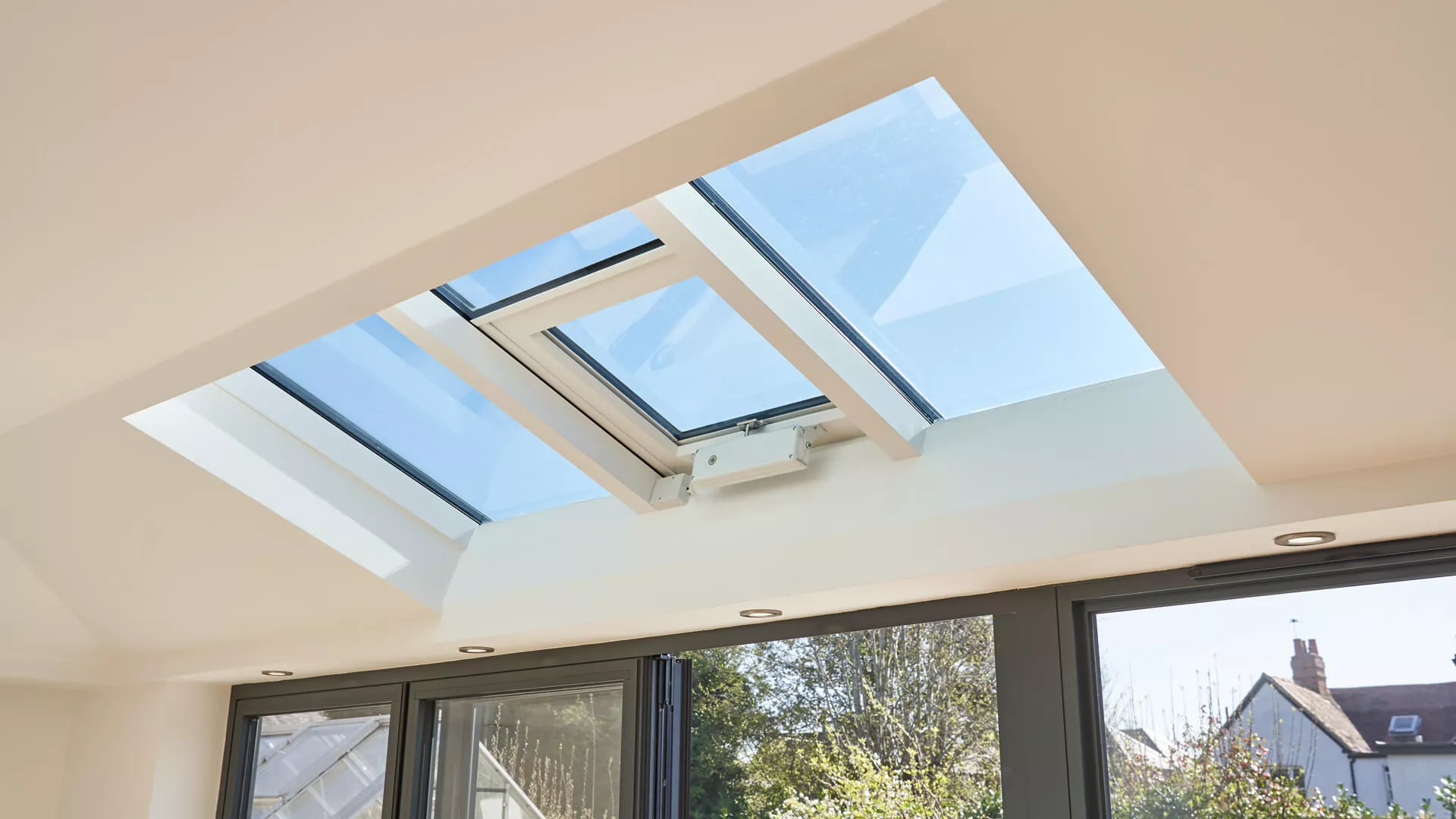 As you give it a push along the stainless-steel runners, it almost feels like it’s floating across. Kept in a closed position, the oversized glass panelling will continue to lure in ample light, whilst the product protects the extension against intrusion.