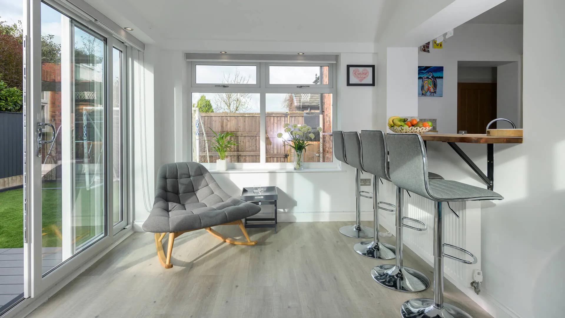 A bi-folding door exudes elegance and offers exceptional functionality. It allows you to open up an entire wall of your home or conservatory, maximising views and creating a seamless transition between indoors and outdoors.