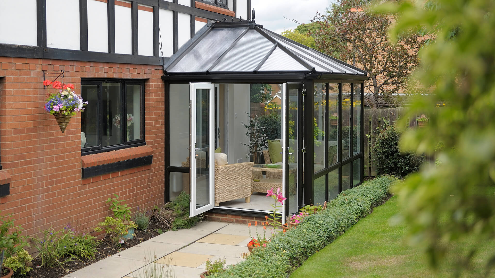 CLASSIC BLACK CONSERVATORY WITH POLYCARBONATE ROOF