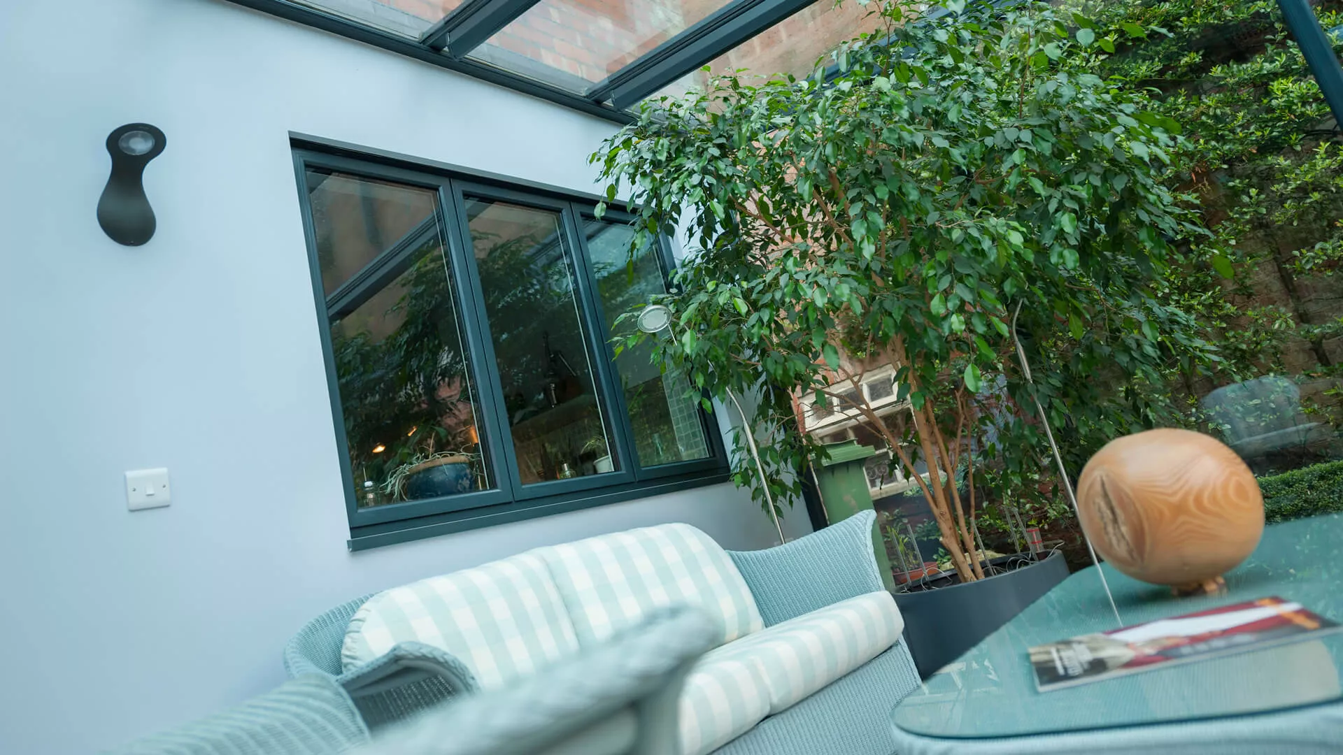 Some conservatory companies advertise a Lean-To conservatory as a “sunroom”. The reason being is because lots of natural light enters into the space due to the exceptionally slim framework and this design is no different. Even the framework above eye level in the roofing system is tremendously trim and subsequently dominated by glass. All that glass also provides the most captivating aerial views. Very wisely, the occupants settled on a contemporary grey finish so that the conservatory matches the colour present on the existing windows and doors. This finish promises the same lasting quality that the Lean-To will deliver for years to come.