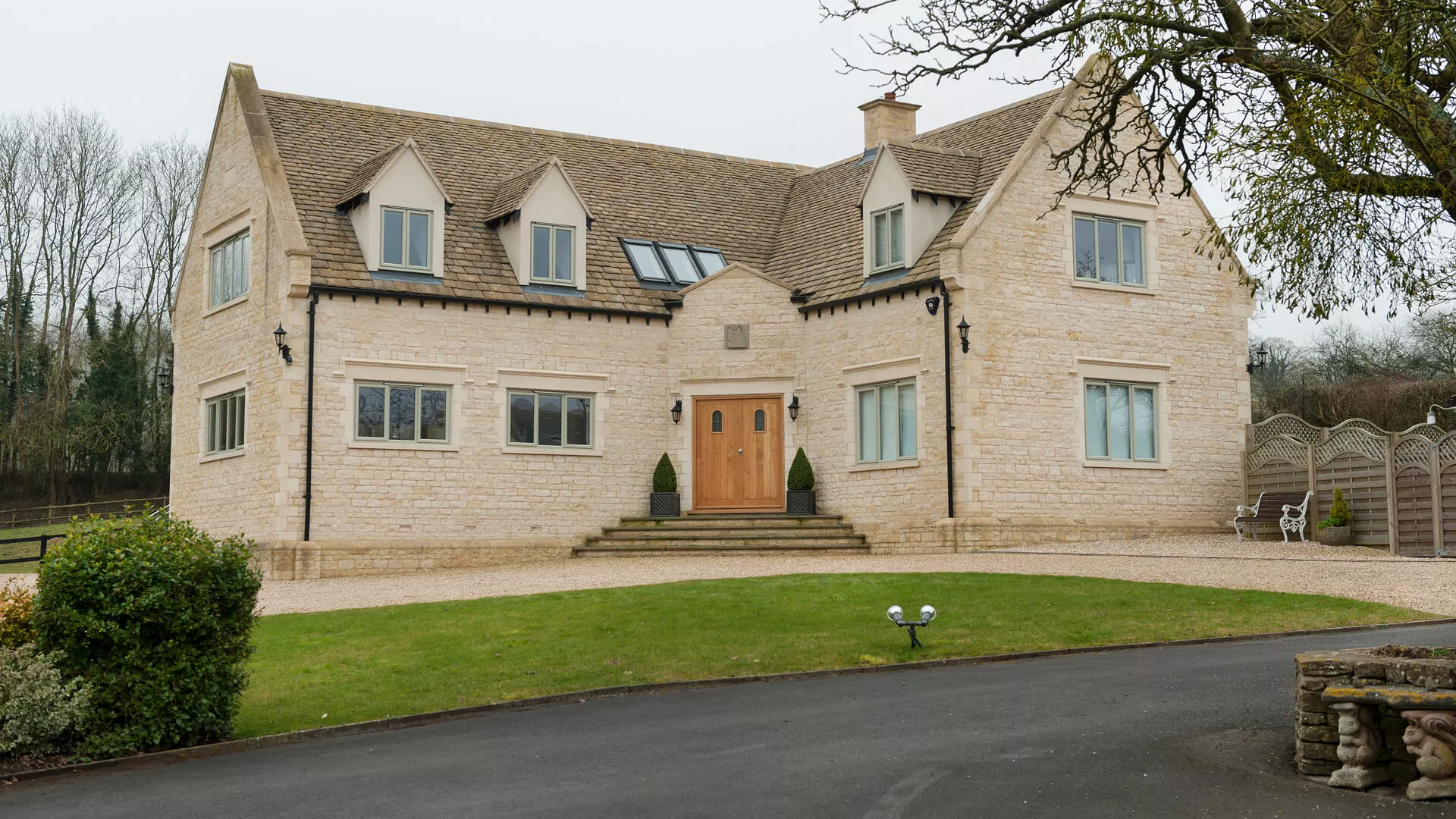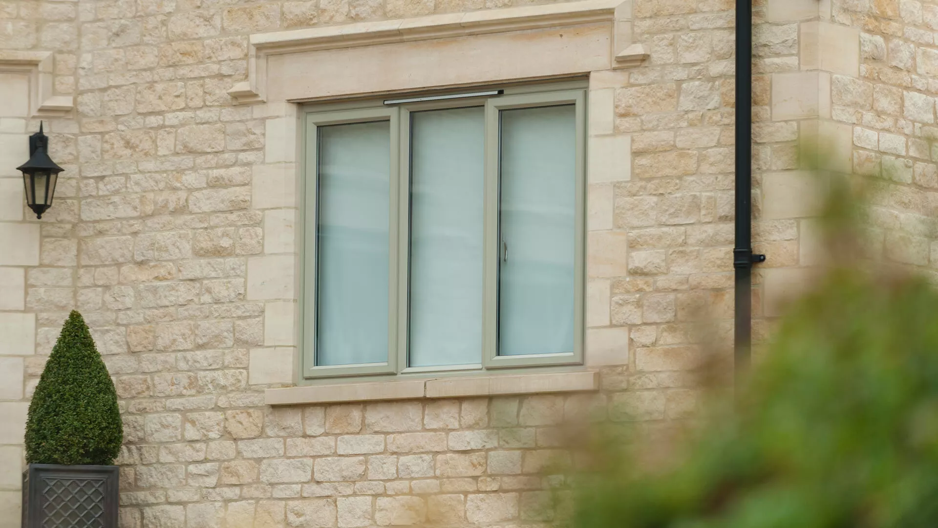 The new window frames are equally as slender as the framework used in the bi-folding doors. This has enabled a large volume of glass to be included and the glazing promises to enhance thermal efficiency. A multitude of colour options were assessed prior to the window and door installation going ahead, but once the owners of the house saw Chartwell Green there was only winner. It works perfectly with the cream coloured brickwork and gives the whole place a touch of authenticity that you’d normally only get when fitting traditional windows and doors. It also provides a beautiful contrast to the wood-like front door which is in actual fact made up of a number of maintenance-free materials.