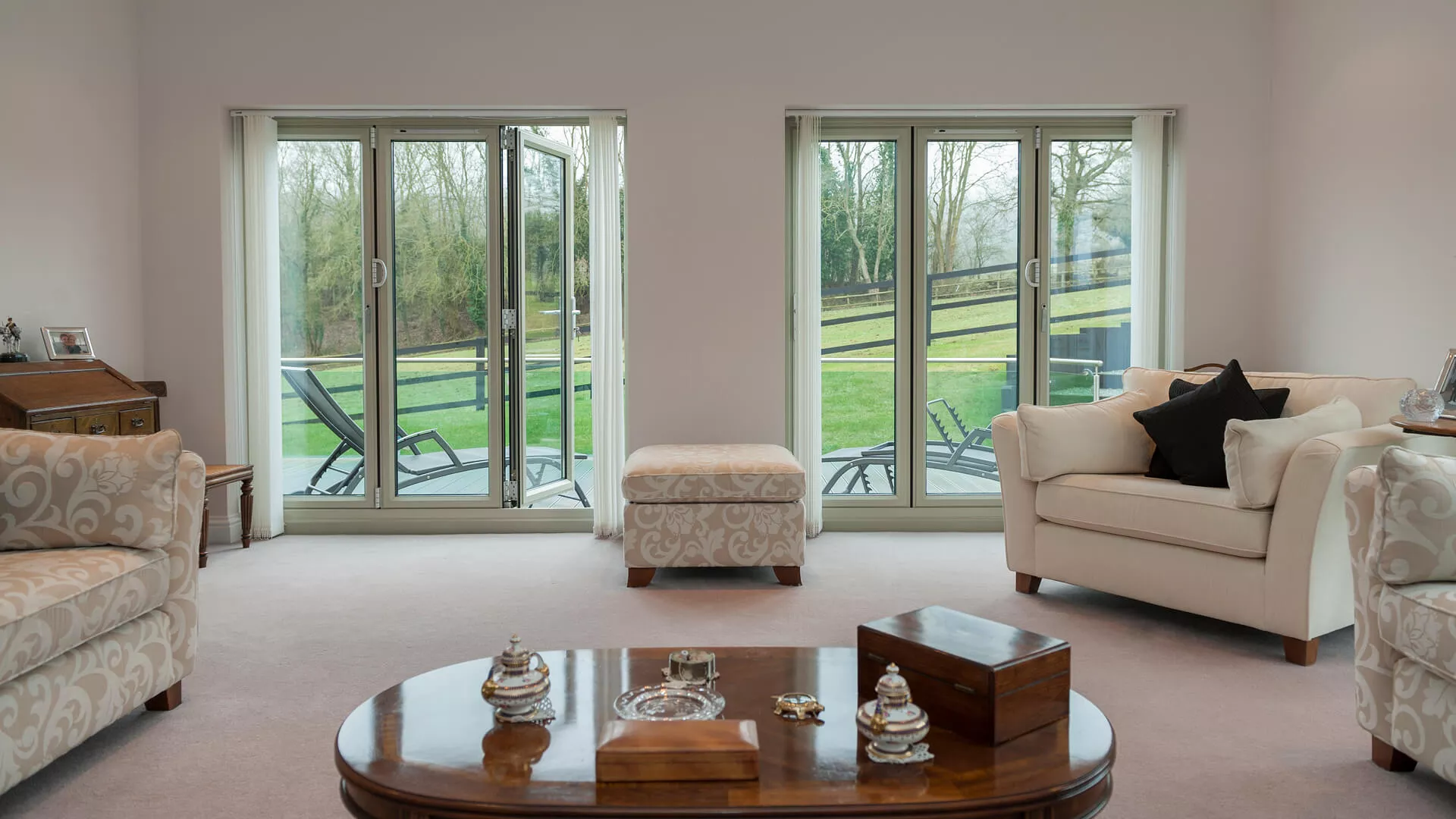 When you have an extravagant property it makes sense to improve it with extravagant home improvements. Aluminium windows and bi-folding doors most definitely the bill and even more so when they’re supplied in one of the hottest colours of the moment – Chartwell Green. The various bi-folding doors included in this project are unbelievably easy to manoeuvre and gracefully glide as they make their way along the track. Countless different openings can be created throughout the house, most notably in the lounge where the sofas and armchairs can be swapped for a lounger outside.