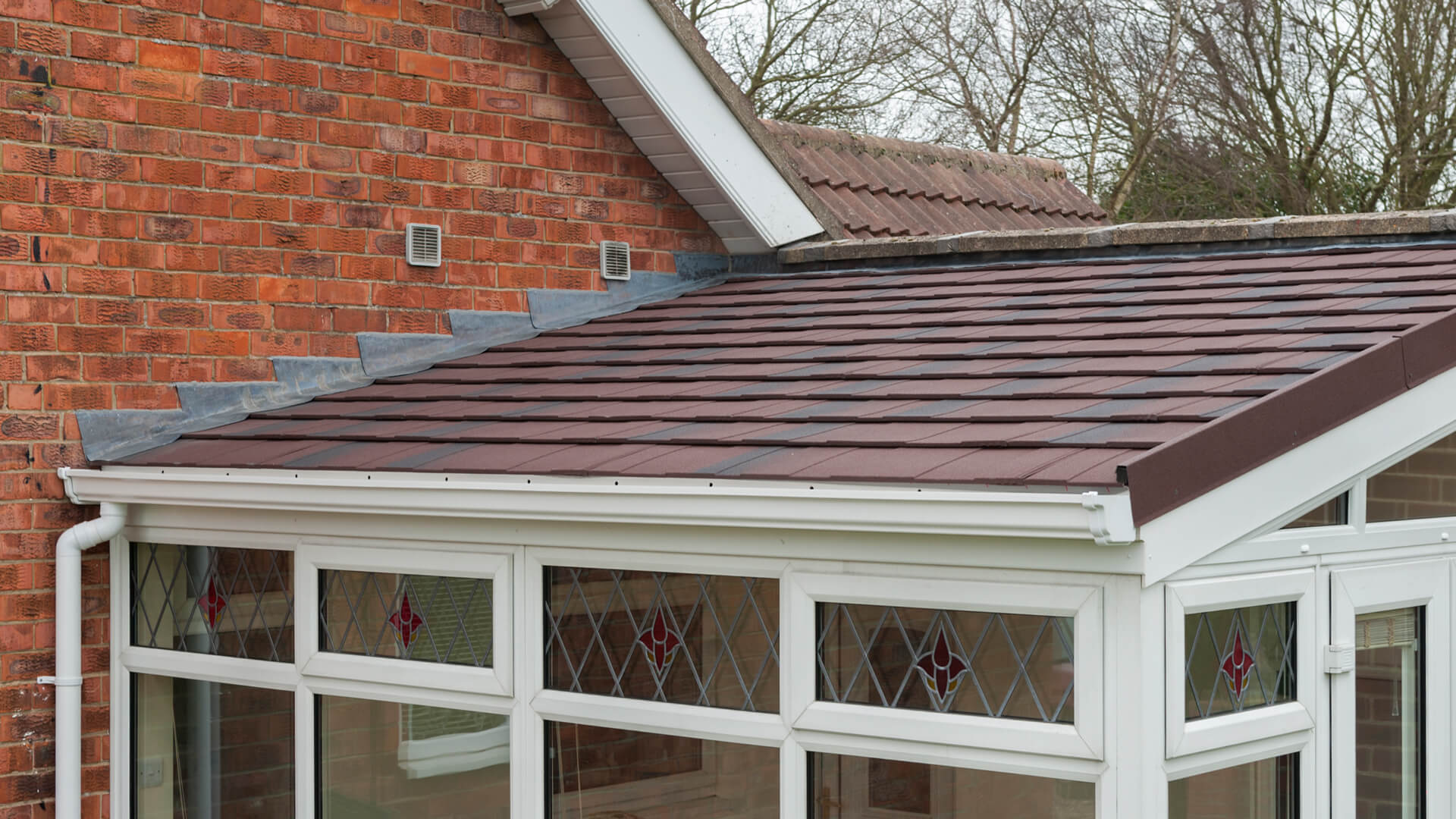A lot of time and effort was inputted to ensure that the new roof covering fitted perfectly in place of the old roof and an umber finish was chosen for the tiles so that they mimic the house roof tiles. To the eyes and hands these tiles look and feel exactly like traditional tiles, only they won’t crack or lose their appearance. Various pieces of furniture have been placed inside the newly reborn conservatory as everyone in the house wants to enjoy it again. There are some French doors integrated into the design though if they get the urge on occasions to exchange the conservatory for the garden.